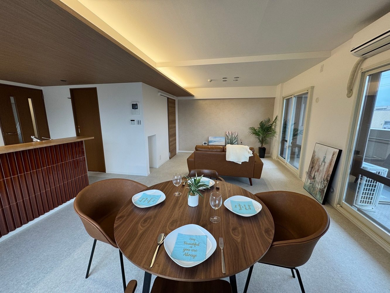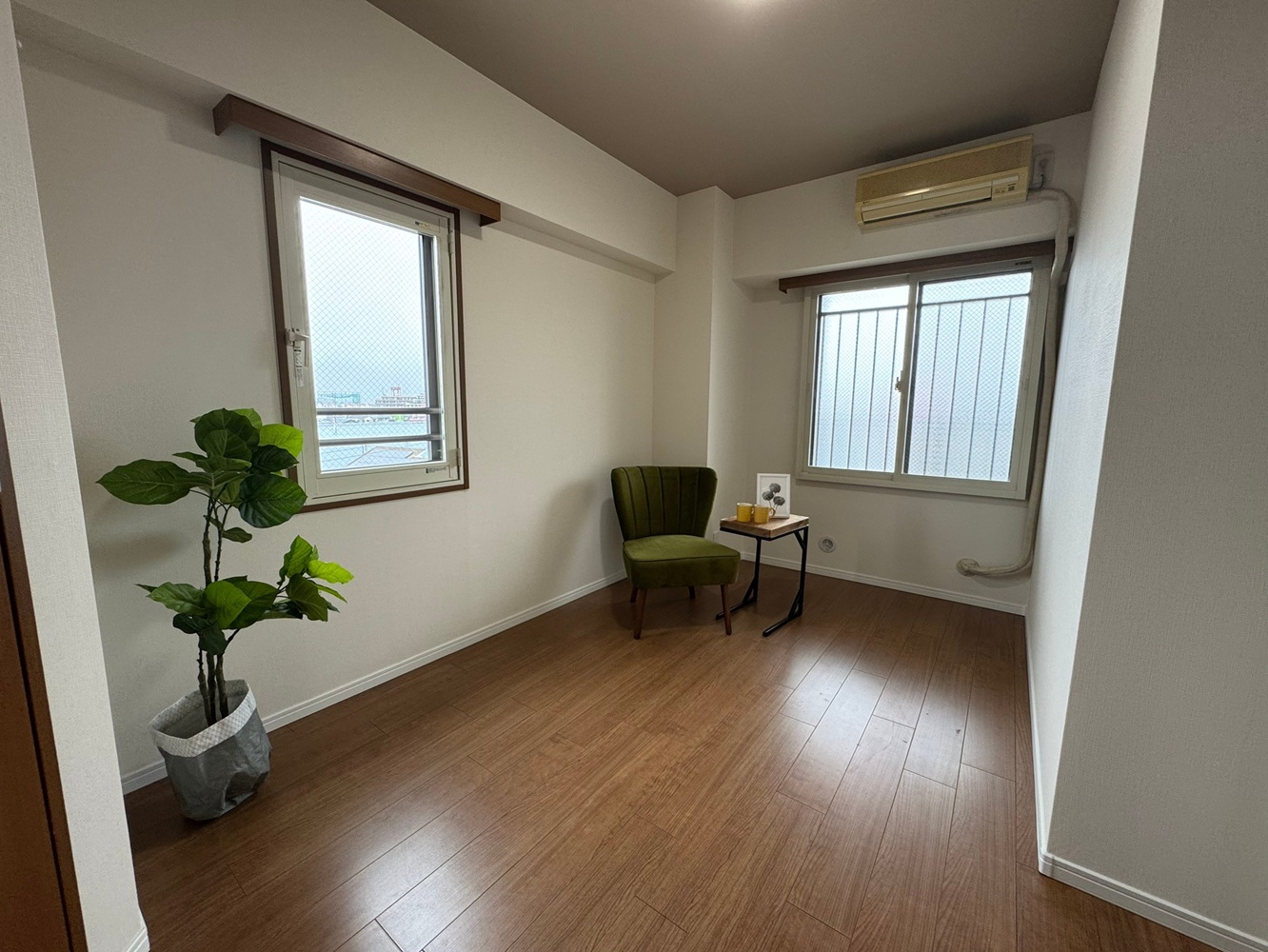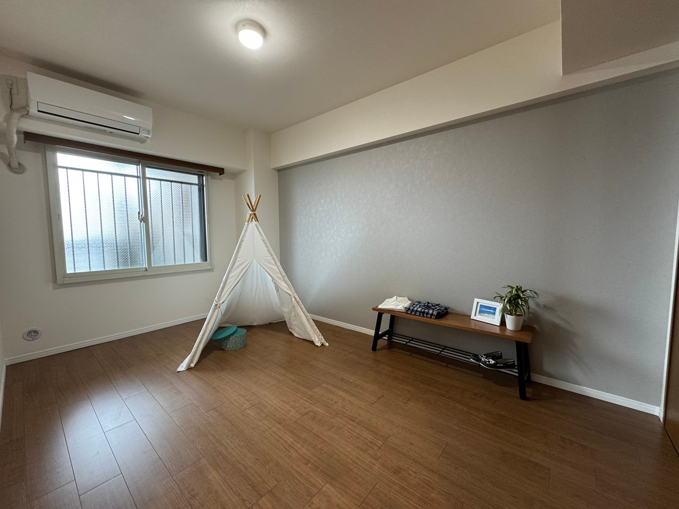 大きい掃き出し窓から陽が差し込む明るい空間。
