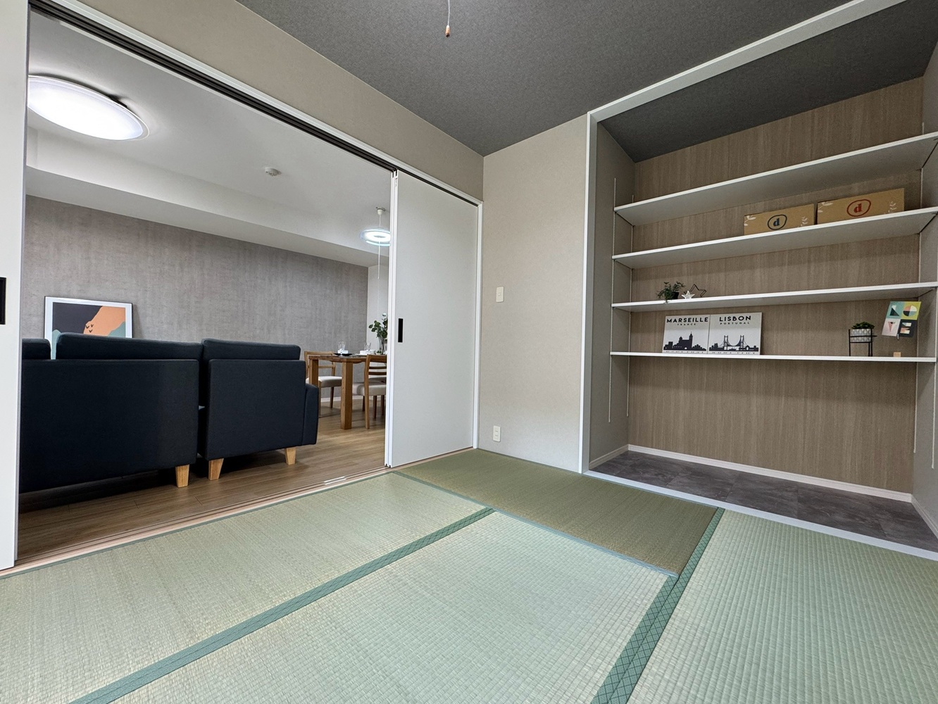 収納はお部屋が広く見えるオープンスタイルで飾り棚としても活用できます。